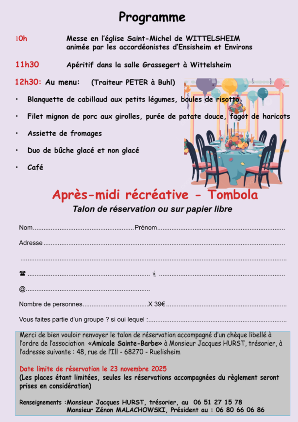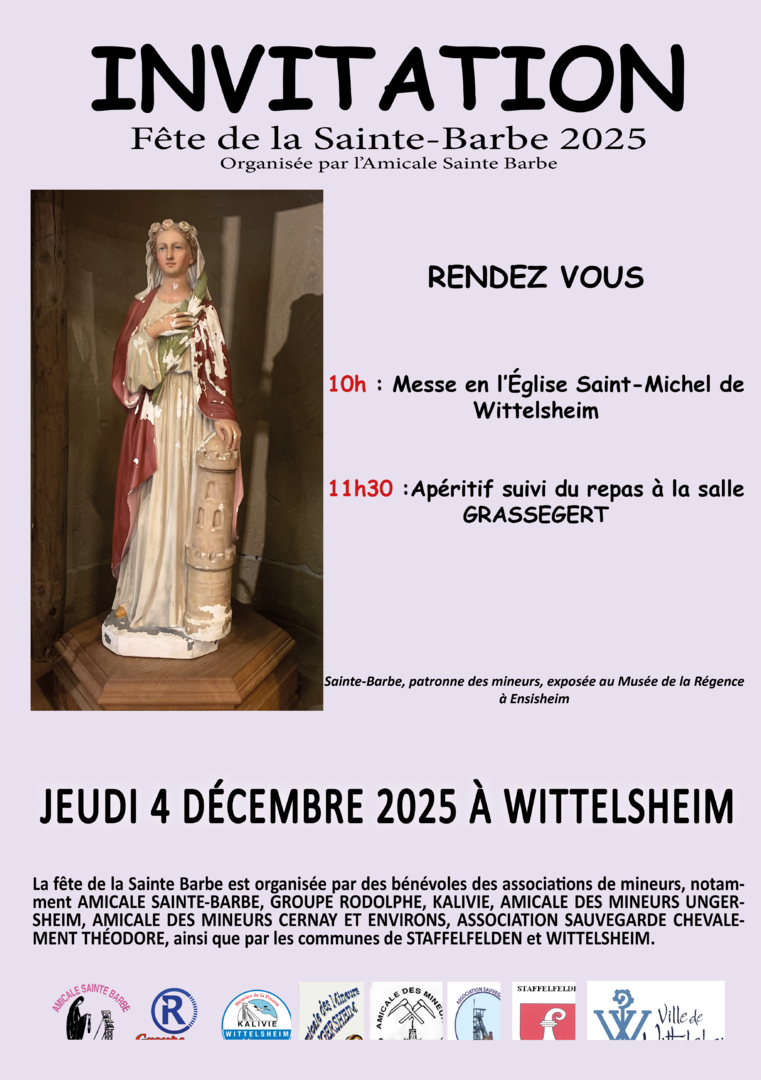 Le collectif Sainte Barbe vous invite le 4 décembre 2025 à la salle Grassegert pour un repas festif autour de cette